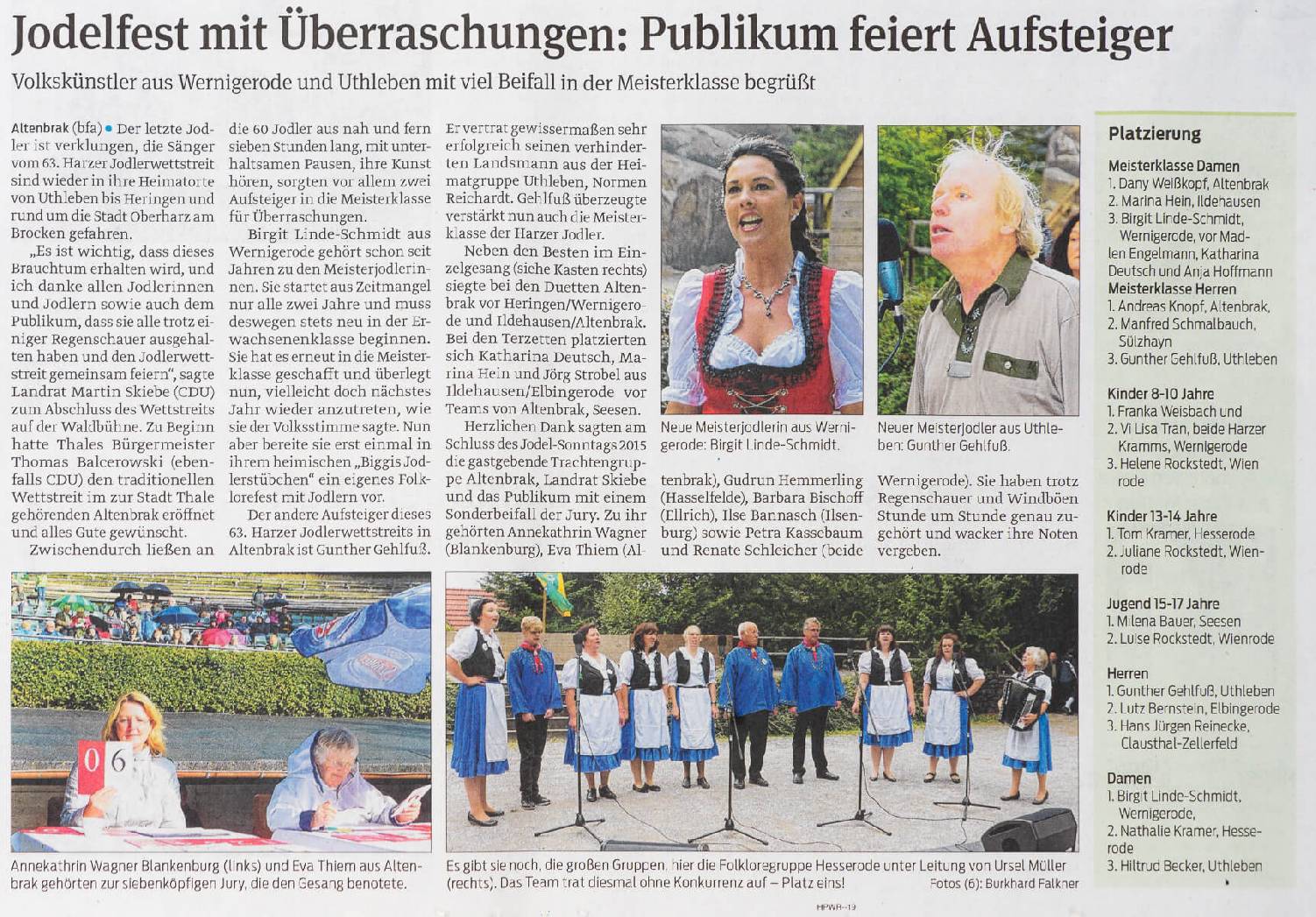 63. Harzer Jodlerwettstreit – Aufstieg in die Meisterklasse